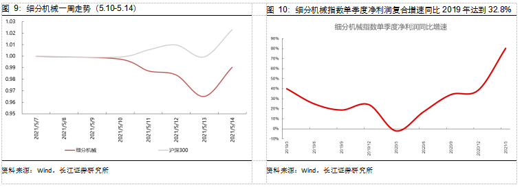 近期机械行业的关注点主要在原材料涨价以及海外疫情(印度)方面。原材料涨价对机械影响较大的板块为工程机械、叉车、电梯等,其成本占比较高,但可以通过向上游(零部件)及下游价格传导。本轮周期机械行业议价权有明显提升,机械很多板块均发出涨价通知,通胀传导路径相对通畅。印度疫情暂时影响部分出口企业的预期,但经去年Q4验证,海外需求通过向国内转单会有所疏解。