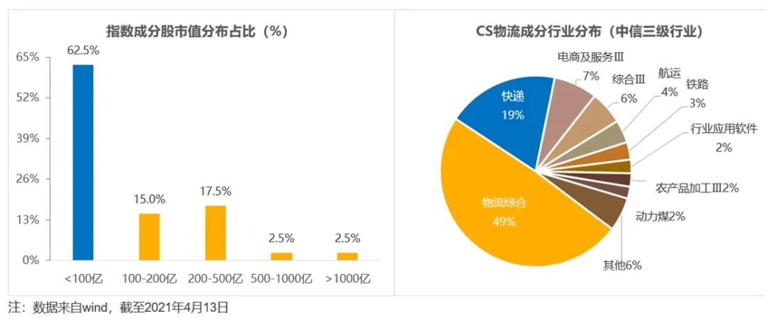 第一,它是一只交易型开放式指数基金,主要采用复制法进行投资,即按照标的指数的成份股组成及其权重构建基金股票投资组合,并根据标的指数成份股及其权重的变化进行相应调整。 第二,它是全市场首批*物流类ETF产品,为投资者布局物流行业提供了便捷的工具。 (首批截止日为2021年5月。) 物流产业作为国民经济的动脉系统,其发展程度成为衡量一个国家现代化程度和综合国力的重要标志之一。 统计局数据显示,2020年1-12月,全国社会物流总额为300.1万亿元,按可比价格计算,同比增长3.5%。可见,我国已经成为名副其实的物流大国。 富国中证现代物流ETF紧密跟踪中证现代物流指数,简称CS物流指数(930716.CSI),一基打包40只物流行业股。 中证现代物流指数选取专业品物流、供应链物流、冷链和农产品物流、仓储服务、物流信息化和电商平台等提供现代物流服务的代表性公司作为样本股,采用自由流通市值加权方式,并对单个样本股设置5%的权重上限,以反映现代物流上市公司股票的整体表现。 CS物流指数的成分股市值主要集中于100亿以内,市值大于500亿股票权重占比5%,200~500亿股票权重占比17.5%。从细分子行业来看,CS物流指数子行业主要集中在物流综合、快递、电商及服务等领域。 CS物流指数(930716.CSI)前十大重仓股: 客官们肯定还想知道,物流行业投资价值在哪里?不妨接着往下了解一下: ①、物流行业盈利情况:在疫情逐步得到有效控制后,2020年物流行业所受的负面冲击逐渐减弱,2020Q2-Q3营业收入同比增长率逐步回升;归属母公司净利润同比增长率由负转正,保持上升趋势。 快递行业一季度业绩亮眼:3月快递寄件量达88 亿件,同比增长47%(1-2 月同比增长100%),一季度总量达219 亿件,同比增长75.0%,2019 年至2021 年同期复合增长率为34.4%。一季度快递行业收入实现高增长,2021年全年仍有望保持较高增速。 (数据来源:国家统计局) 电商行业加速增长:一季度线上销售额2.8万亿元,同比增长29.9%,2019年至2021年两年复合增长率为14.8%。2021年一季度线上购物渗透率(线上实物销售额占社会零售总额的百分比)为22%。 (数据来源:国家统计局) 截至2021年4月16日,物流行业的PE为22倍,历史分位数33%;PB为1.99倍,历史分位数27%,可见其估值处于历史低位区间,具备一定吸引力。 首先,目前,我国物流行业正处于飞速发展的成长期,灼识咨询数据显示,截止2019年底,我国物流行业规模为14.6万亿;其预测到2025年,全国物流市场规模将达到近20万亿。 其次,需求端来看,全国社会物流总额正在逐年稳步上升;供给侧来看,我国社会物流总成本占GDP的比重逐年减少,但行业运行质量相较发达国家仍有一定差距,未来提升与发展的空间较大。 再次,从顶层规划来看:“十四五”期间,现代物流业在国民经济中的产业地位将进一步提升。《十四五规划》对物流发展、供应链创新高度重视,明确提出构建现代物流体系。 ETF是更便捷的交易工具,有分散风险、费率低廉、紧跟指数和场内交易等优势。 场内买卖:ETF在交易所挂牌交易,投资者可以直接在场内买卖ETF份额。 换手便捷:在申购赎回时,仅需代理券商按照不超过0.5%的标准收取佣金,无其他费用。 偏离度低:因为“一揽子股票”的申赎机制,ETF较少受到申购、赎回对基金净值的冲击,相比其他开放式指数基金,理论上更贴合指数的走势。 富国现代物流ETF的管理费为0.50%,托管费为0.10%,费率较主动管理基金更低。 富国量化团队组建超过10年,是国内最早发展的量化团队之一,核心团队成员稳定;凭借在指数领域深耕多年的优势,富国基金在ETF产品线上展开了多元布局。 在2020年3月《中国证券报》第十七届中国基金业金牛奖评选中,富国基金荣获“量化投资金牛基金公司”奖。 ☆ 量化投资部量化投资总监助理
