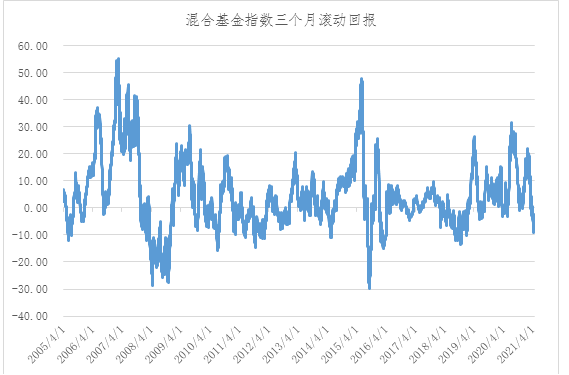 对于短期投资,2月下旬以来的A股市场调整,使得主动权益基金遭遇了一定的净值回撤;但若从持续滚动三个月来看,混合型基金经过调整相对于前期来看进入一个更好的投资区间。根据wind数据统计,2005年以来(剔除2008年国际金融危机和2015年股灾)混合基金指数如果三个月滚动收益触及-10%以后,则在未来三个月有较大的概率进入收益率修复区间。目前,混合基金指数正处于前期回调之后,连续三个月滚动回报轨迹的下沿,这意味着,未来三个月持基的收益概率将有望较过去三个月显著改善。