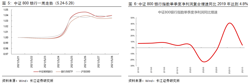年报方面,银行板块整体的净利润同比增速为0.58%;一季报方面,银行板块整体的净利润(2019年为基准)复合增速为4.8%;业绩表现较亮眼。