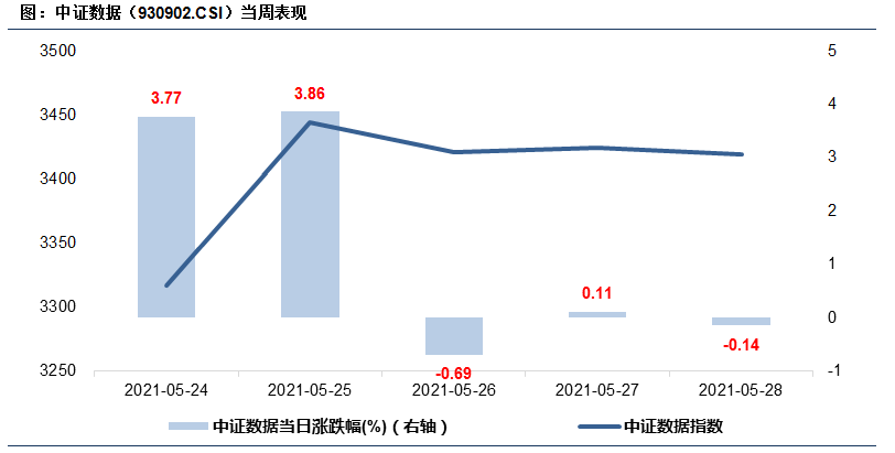 上周中证数据指数放量上涨,全周上涨7.11%,相较沪深300指数跑赢3.47%。