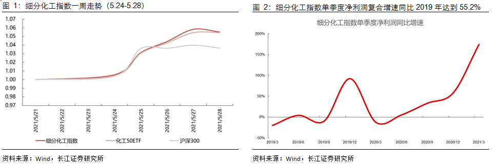 一季度经济数据靓丽,化工公司业绩普遍超预期,细分化工成分股中全部公司披露年报及一季报,年报方面,细分化工整体的净利润同比增速为20.83%;一季报方面,细分化工整体的净利润(2019年为基准)复合增速为55.22%。