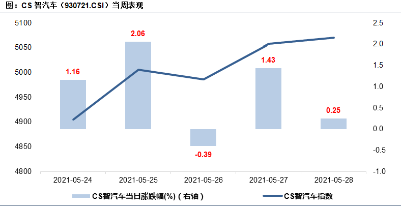 上周CS智汽车指数震荡上行,全周累计上涨4.57%,相较沪深300指数跑赢0.93%。