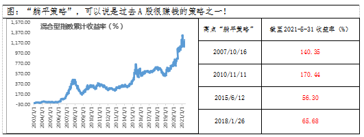 反观“躺平”策略,越“懒惰”反而越安全!2003年基日至2021年5月31日混合型基金指数的年化收益率达到了15.59%,这样的“躺平”即是“躺赢”!也有人在历次牛市“最高点”进入市场, 2007年、2010年、2015年、2018年高点至今混合型基金指数收益率分别为 140.35%、170.44%、56.30%、65.68%,“躺平”依然是可取的策略。