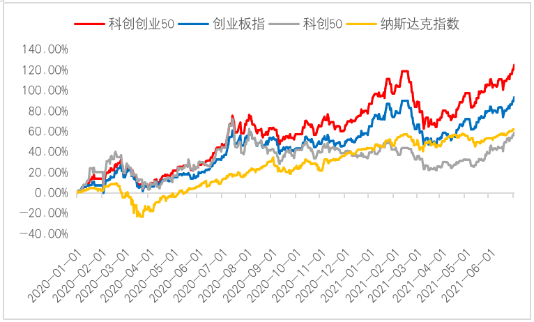 数据来源:wind,截至2021-06-30,科创创业50指数以2019年12月31日为基日,指数历史收益情况不代表未来表现,也不构成基金业绩表现的保证。