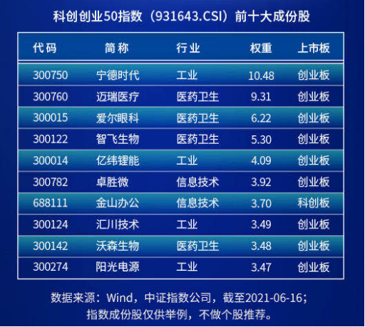 6月1日,汇集了科创板和创业板的中证科创创业50指数诞生,简称“科创创业50”,代码为931643,由科创板和创业板中市值较大的50只新兴产业上市公司证券构成指数样本。
