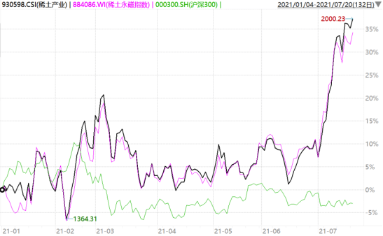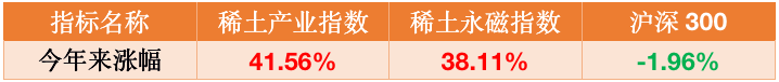 看一下稀土产业指数和稀土永磁指数今年来的走势,长这样: