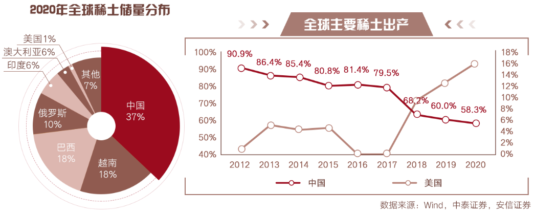 稀土元素具有优秀的磁、光、电性能,能与其他材料组成各类新型材料,大幅提高其他产品的质量和性能。稀土在终端上用量少,但拥有不可替代性,是改进产品结构、提高科技含量、促进行业技术进步的重要战略资源,被称为“21世纪的关键元素”。