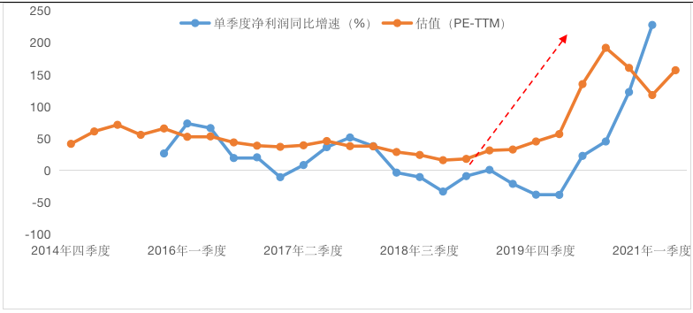 图1:估值提升伴随着短期业绩爆发式的增长!