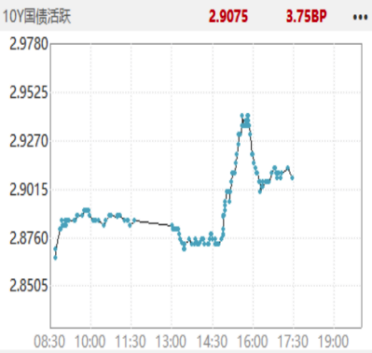 债:2点半利率猛涨,1个小时内10年国债利率从2.87%增长到2.94%