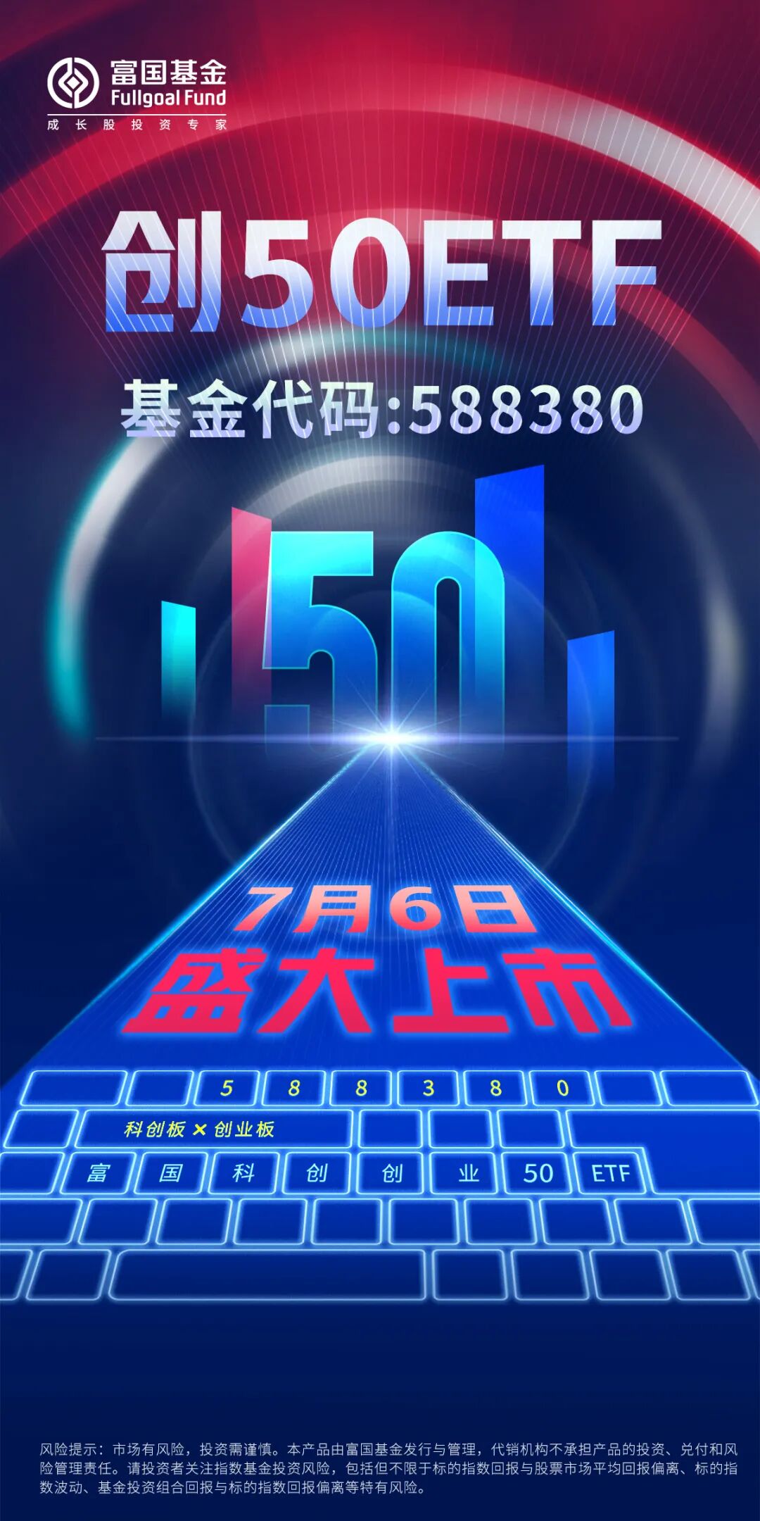 7月6日,备受关注的富国中证科创创业50ETF正式上市,场内简称“创50ETF”,交易代码588380。作为市场上首批双创50ETF之一,创50ETF覆盖创业板和科创板中的50家代表性公司,汇集两大板块的精华,为客官们提供了风险更分散、更加便捷的指数投资工具。