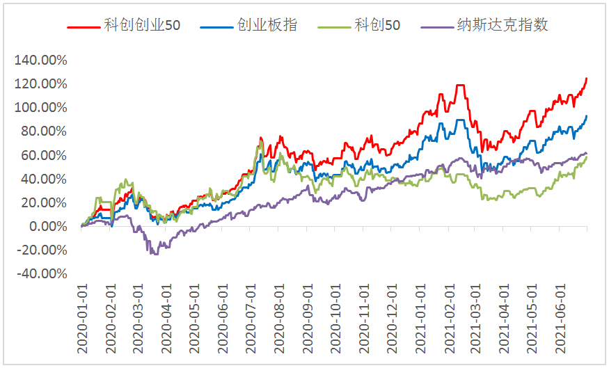 数据来源:wind,截至2021-06-30,科创创业50指数以2019年12月31日为基日,指数历史收益情况不代表未来表现,也不构成基金业绩表现的保证。