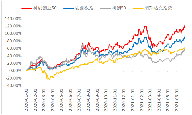 数据来源:wind,截至2021-6-30,科创创业50指数以2019年12月31日为基日,指数历史收益情况不代表未来表现,也不构成基金业绩表现的保证。