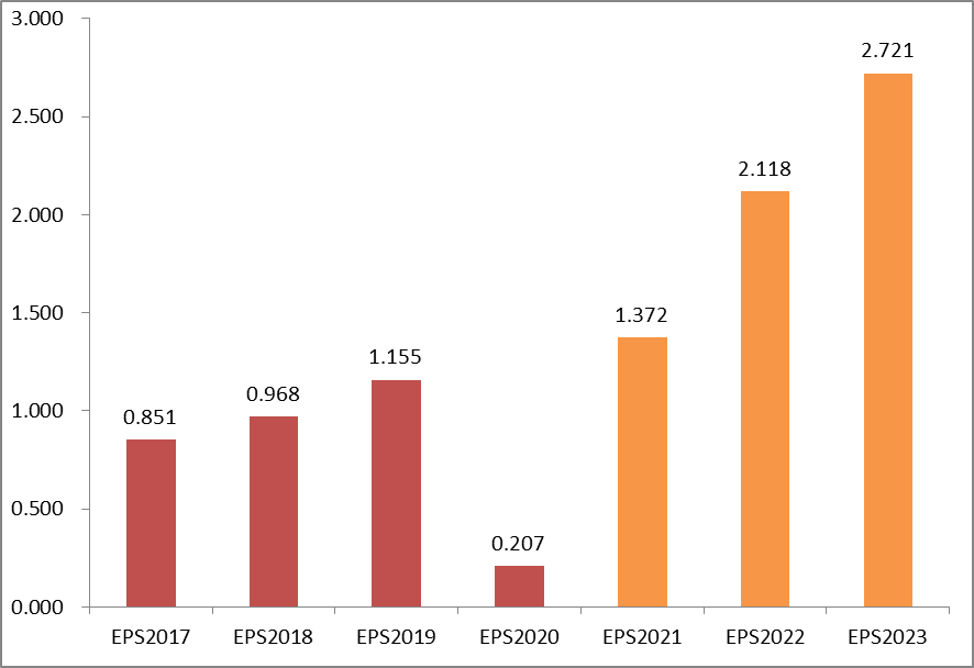 图:旅游ETF成分股的加权EPS走势