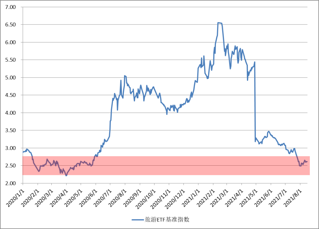 站在今天德尔塔变异病毒正在发酵中,而且拉姆达变异病毒已经开始出现,国内也开始陆陆续续出现一些变异病毒的案例,虽然我们并不知道疫情会如何演绎,但是通过旅游ETF基准指数的估值来看,市场已经较为充分反映了这种悲观预期。