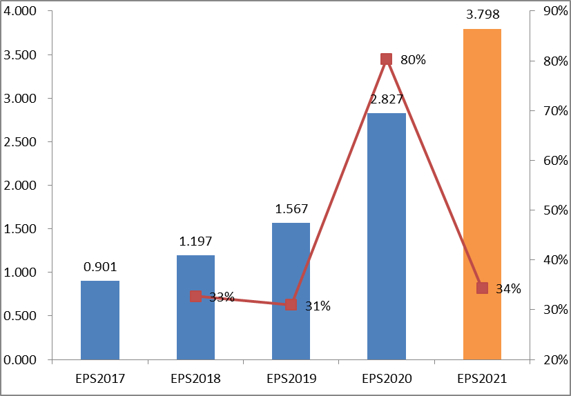 图:医药龙头公司的加权EPS走势