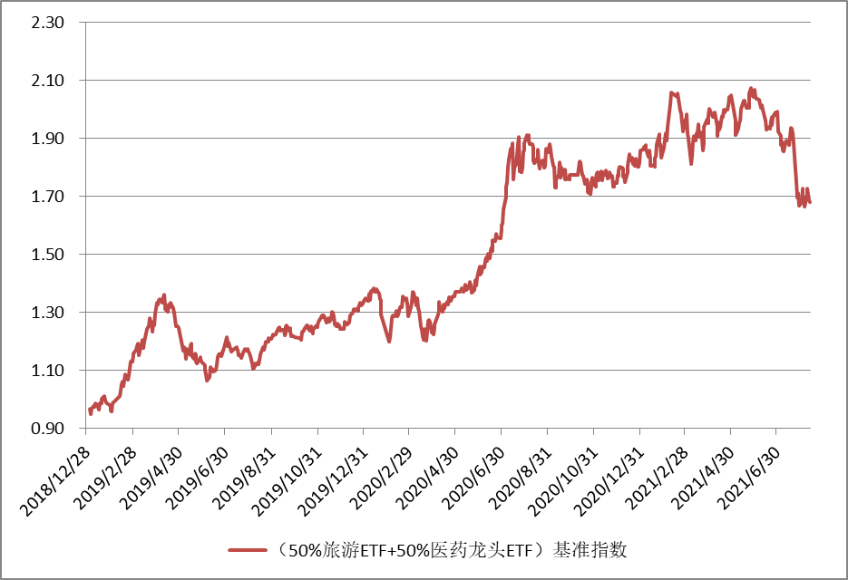 图:“50%医药龙头ETF+50%旅游ETF”基准指数的历史表现