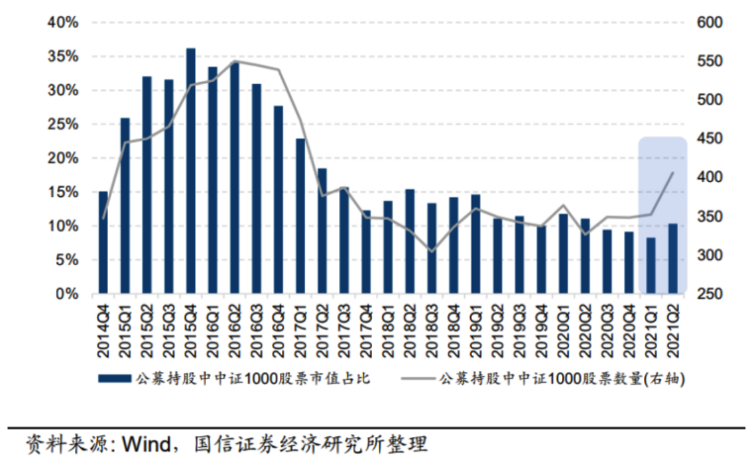 ➤ 公募基金在中证1000指数成分股上的持股市值占比,从今年一季度的8.24%,提升到了二季度的10.3%;