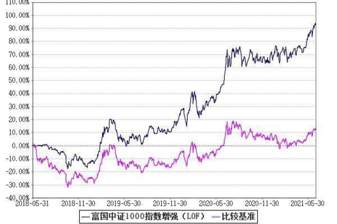 图:富国中证1000指数增强成立以来收益率与比较基准(中证1000指数*95%)收益对比