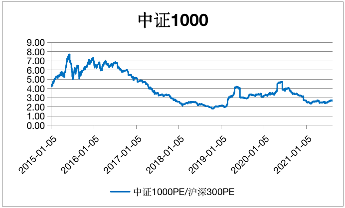 ➤ 与沪深300估值进行比较:当前中证1000相较于沪深300指数的估值倍数约为2.7倍,比近五年65%的时间都更加便宜。