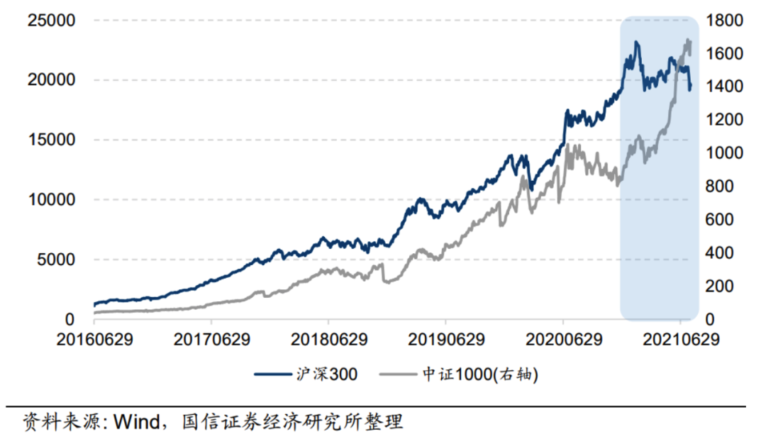 去年市场关注的是“抱团龙头”,今年切换到了“市值下沉”,最直接的证据就是,沪深300表现不行了,中证500和中证1000崛起了。