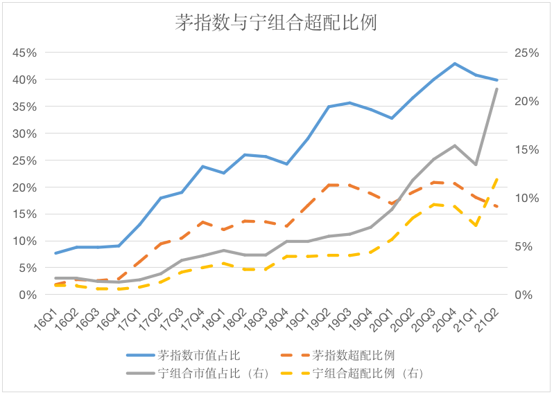 当前公募重仓对宁组合的超配比例达到12%,已经创出历史新高,但是和“茅指数”在去年创下的20%+的超配记录相比,似乎还有加剧的空间。