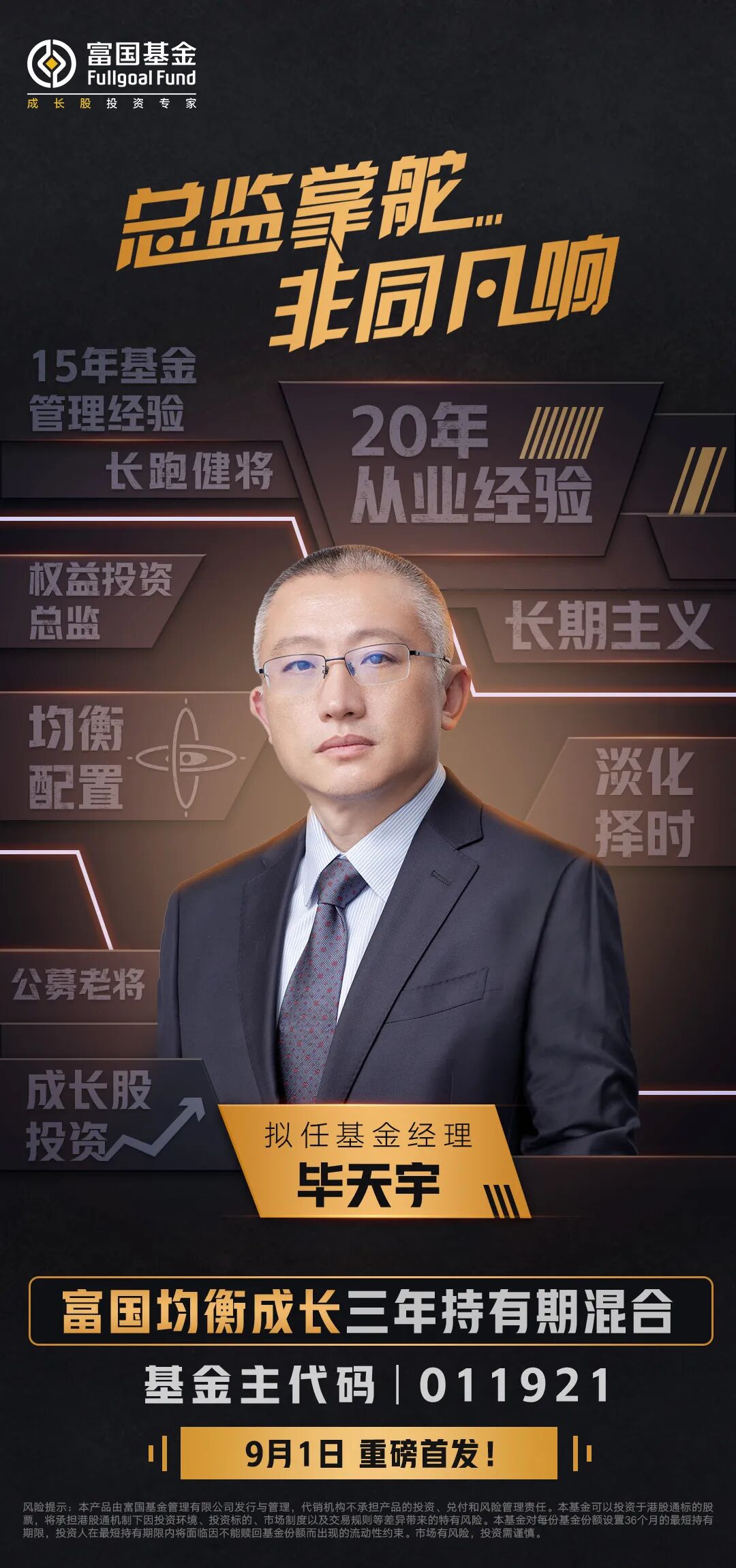 今日,毕天宇的最新力作——富国均衡成长三年持有(主代码:011921)重磅首发!这只基金的名称和毕天宇的投资理念完美契合,甚至可谓“量身定制”。