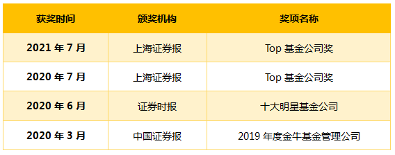 2020年,富国基金同时获得《中国证券报》、《证券时报》、《上海证券报》颁发的年度基金公司荣誉。