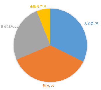 数据来源:Wind,截至2021-8-9。科技板块行业包括计算机、电子、传媒、通信、国防军工,大消费板块行业包括医药生物、食品饮料、家用电器、休闲服务、商业贸易,金融地产板块行业包括银行、非银金融、房地产,周期制造板块行业包括电气设备、有色金属、交通运输、化工、建筑材料、农林牧渔,以上行业均属于申万一级行业分类。