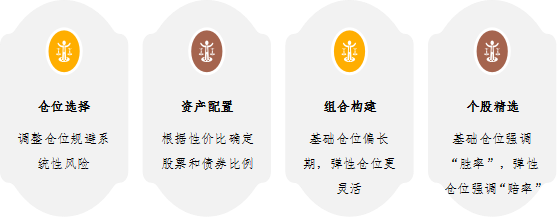 👉👉就组合构建而言,于渤将组合分为基础仓位(大盘蓝筹和优质白马)以及弹性仓位(周期和TMT)。当判断市场有风险时,优先下调弹性仓位。就个股精选来看,于渤对基础仓位强调“胜率”,对弹性仓位则强调“赔率”。