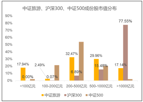 具体来看,中证旅游指数(930633.CSI)中,市值大于500亿的共8家,占比56.52%。该指数的子行业主要集中在航空、景区、酒店、旅游零售(免税)、机场等领域,可以说是出门旅游一条龙的场景——和全家乘飞机、逛景点、住酒店、买买买,聚焦旅游产业链核心价值。