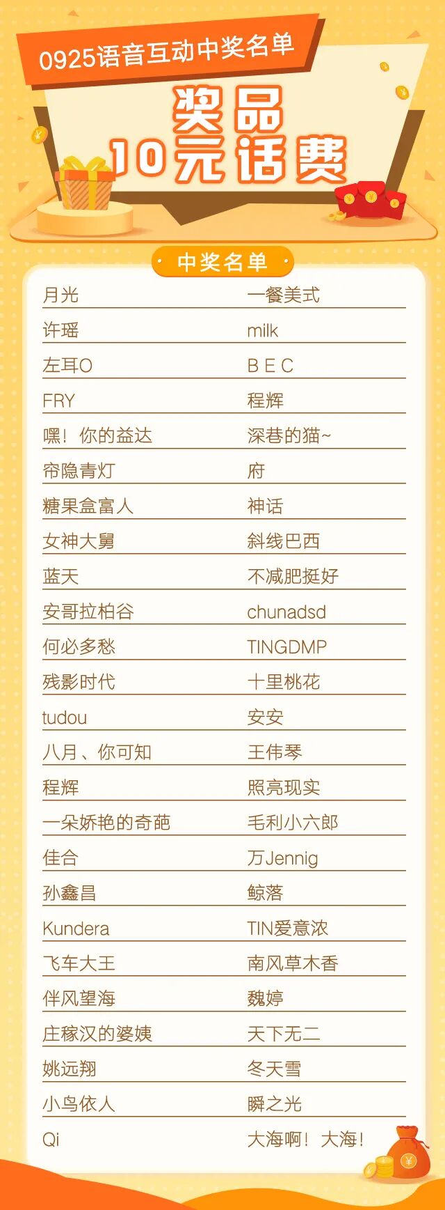 话费将于9月30日(本周四之前)充值到中奖客官后台预留的手机号码中,请各位客官耐心等待~