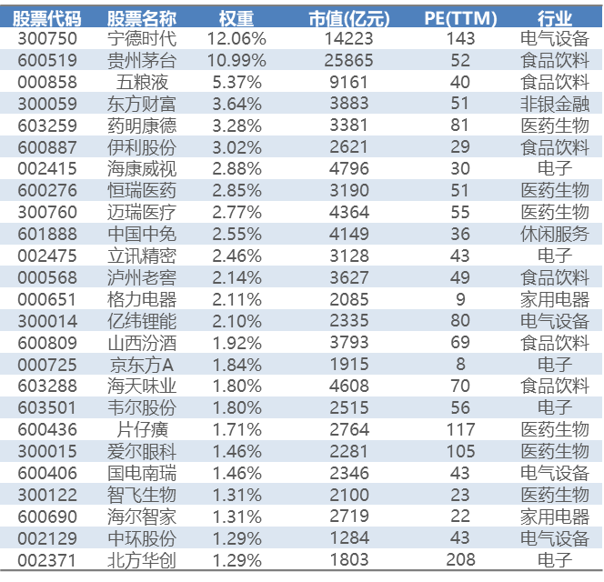 数据来源:中证指数公司、wind,截至2021-12-20;以上个股仅作指数分析使用,不作为任何投资建议。