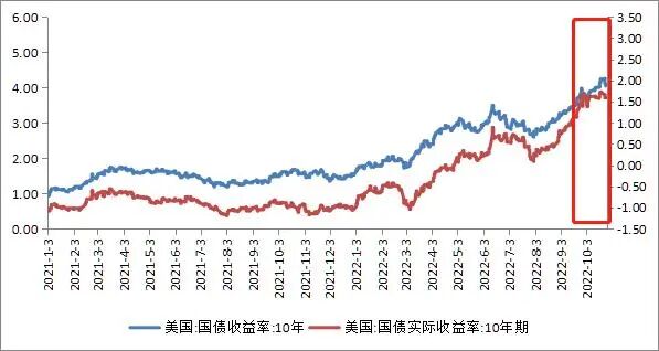 ◆ 首先我们已经等到了美联储“放鸽”的信号:上周五,部分美联储官员暗示,美联储将考虑从去12月开始放缓加息,随后美债收益率开始高位下降、美股大涨。很多预判认为,美国核心通胀可能在明年年初见顶,美联储继续鹰派加息的概率在下降。