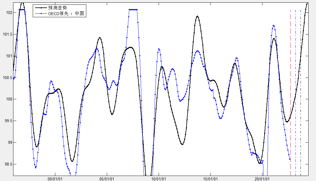 图:根据周期理论预测,中国经济可能在明年开启反弹(黑线)