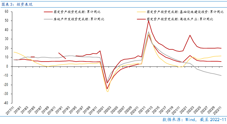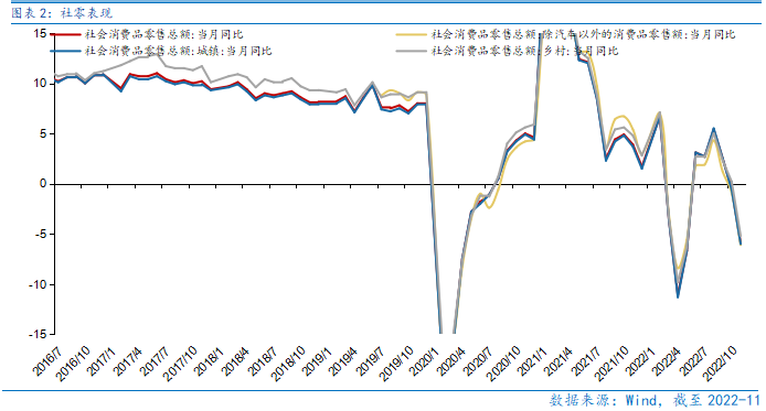 11月经济趋弱,短期难有复苏,关注疫情冲击何时过去。11月经济数据显示消费、投资、工业等指标均环比回落,显示11月疫情叠加封控使得经济承压明显,而12月又迎“防疫优化”,疫情冲击显著加剧,经济短期内料难复苏。中期可关注感染曲线何时见顶,届时疫情冲击回落,防疫限制大幅减少,中国经济有望迎极强复苏。