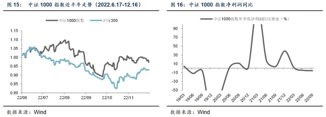 未来半年低利率弱基本面的宏观假设下,中小成长风格或将延续。伴随近期地产政策加码与防疫政策优化,经济复苏预期加强。但积极政策传导至基本面,仍有一定时滞,上半年或难见到经济和企业盈利数据的明显回暖;美国通胀回落,加息预期放缓,人民汇率压力缓解,短期国内货币政策掣肘因素减轻,宽松的流动性环境将延续。历史上经济下行、流动性宽松环境下,中小成长风格相对占优。