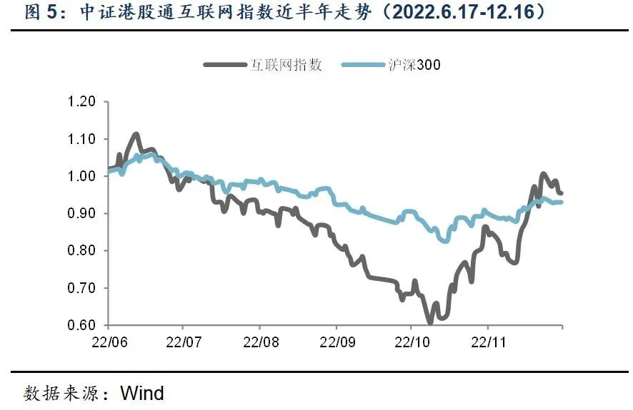 近半年表现回顾:港股通互联网指数近半年的收益率为-4.6%,跑赢沪深300的-7%。