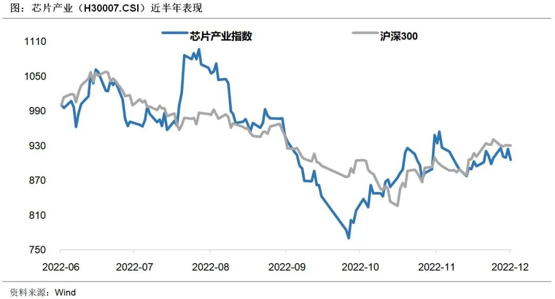 6月17日至12月16日,芯片产业指数(H30007.CSI)累计下跌9.42%,同期沪深300涨跌幅为-6.96%。
