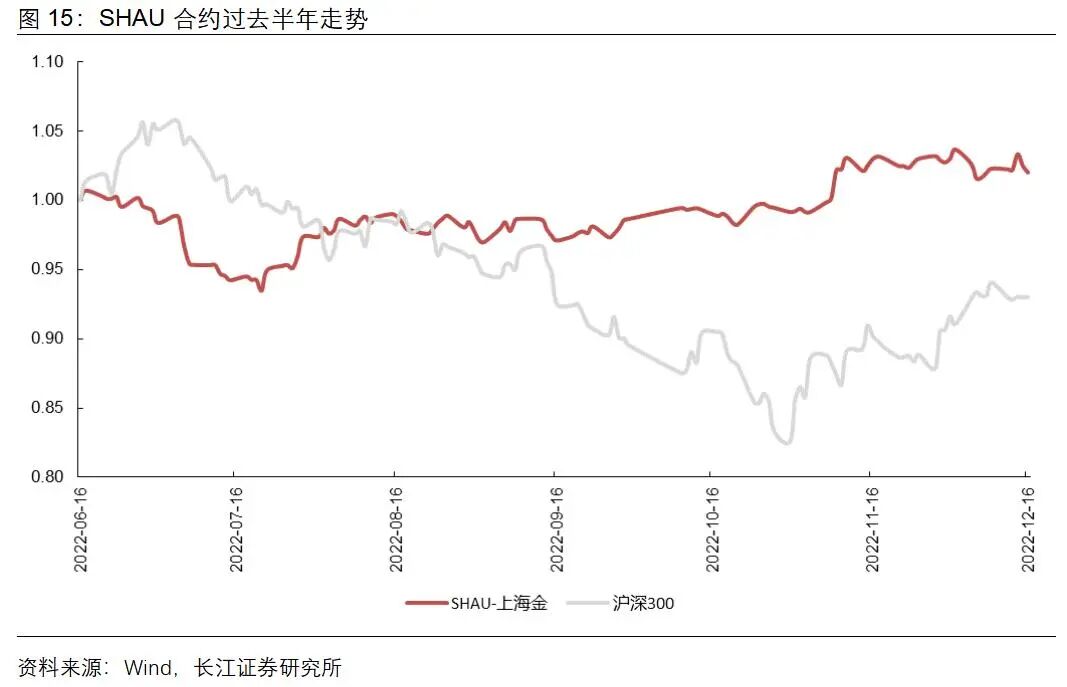 半年表现回顾:近半年上海金合约的收益率为2.0%,跑赢沪深300的-7.0%;上海金合约整体行情振动幅度极小。