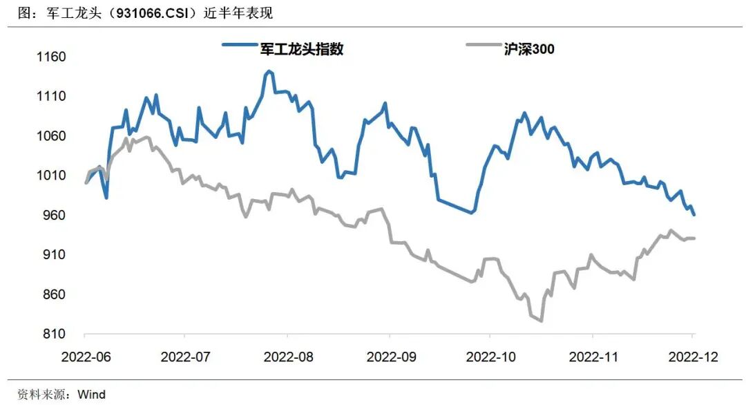6月17日至12月16日,军工龙头指数(931066.CSI)下跌4.01%,沪深300区间涨跌幅为-6.96%。