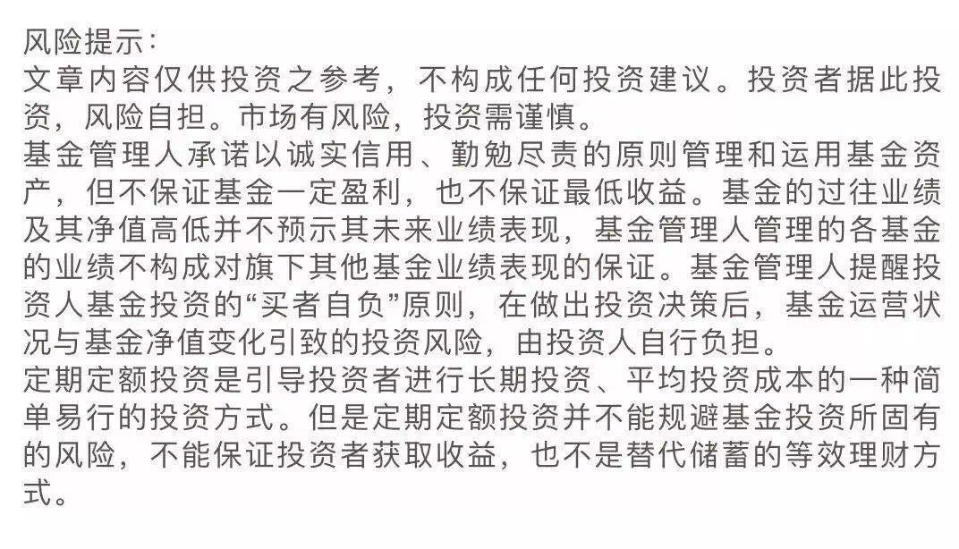 以上内容不代表对市场和行业走势的预判,不构成投资动作和投资建议亦不预示相关基金未来具体操作。市场有风险,投资需谨慎,建议持有人根据自身的风险承受能力审慎作出投资决策。