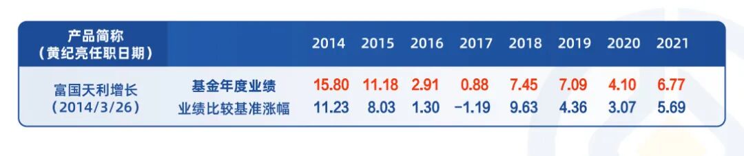 以他管理的富国老牌基金——富国天利为例,自其2014年3月管理以来,每年都获得正收益,并且超越业绩比较基准。