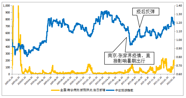 ◆ 而短期,疫情反复仍是主导旅游行业走势的重要因素,但从近两年的经验来看,疫情初期扩散,会带来旅游板块大跌,但是,一旦管控措施出台,即便新增确诊人数没有下降,旅游板块大概率会率先反弹。