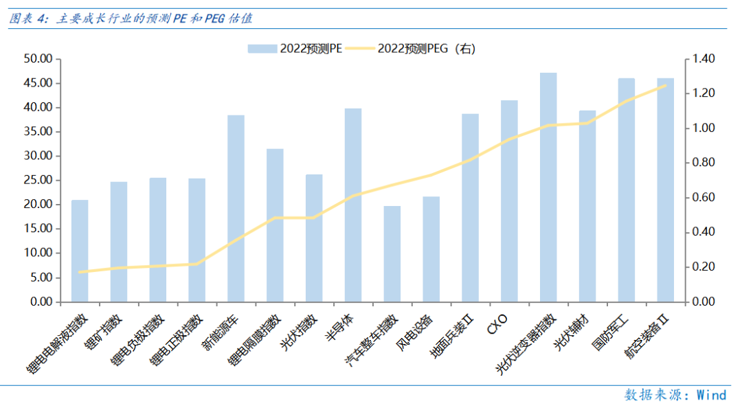 从2022年预测PE和PEG来看,“双低”的主要是锂电电解液、锂电正极和锂矿PE和PEG估值均低,也都属于新能源车的大板块,故短期新能源车板块或值得积极关注。