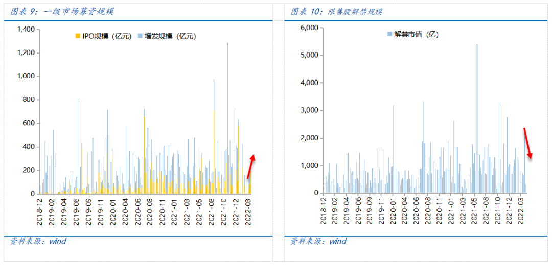 资金需求方面,本周一级市场规模有所回升,限售股解禁压力减小,重要股东减持规模增大。本周一级市场资金募集金额合计259.05亿元,较上周增加35.18%;结构上,IPO募集197.83亿元,周环比增加132.45%;增发募集61.22亿元,周环比减少42.53%。本周限售股解禁规模合计642.26亿元,周环比减少14.68%,根据目前披露的数据,预计下周解禁规模约2252.04亿元,解禁压力将上行。本周重要股东减持4.37亿元,上周减持52.88亿元,减持规模大幅减少。