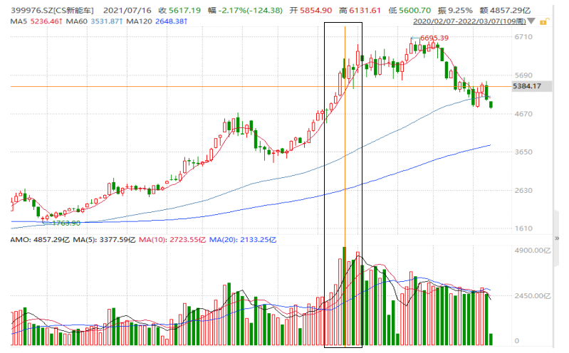 图:CS新能车指数K线图与成交量