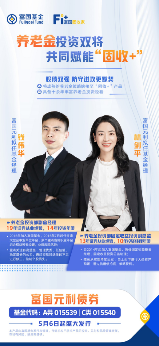 富国元利拟由资深养老金投资实力干将钱伟华、林剑平共同管理,“股债搭档”,防守和进攻的配合更默契。两位基金经理均有10余年投资经验,具备成熟的养老金投资策略。其中,固收投资由林剑平负责,权益投资部分由钱伟华管理。