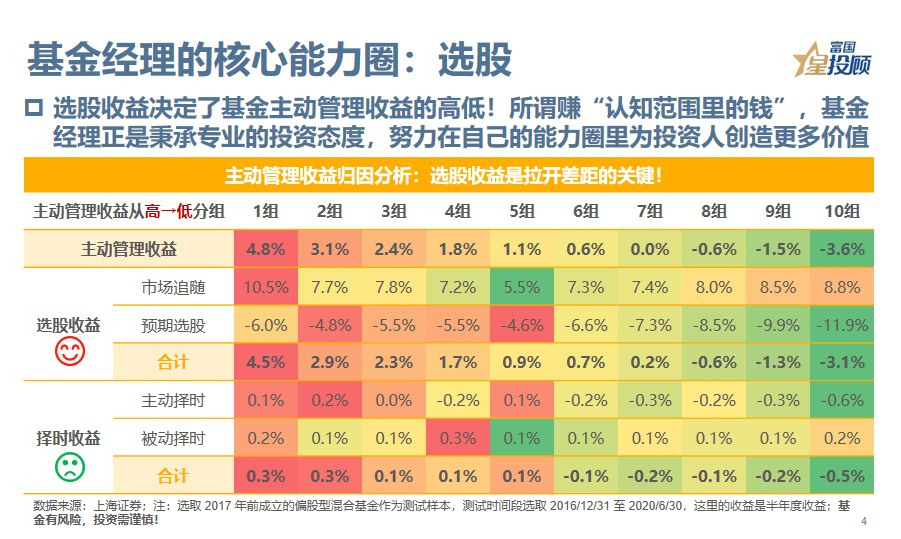 4、基金经理的核心能力圈是“选股”,他们也是在赚“认知范围里的钱”。任何人,不论是伟人,还是普通人,亦不论是古人,还是今人,都是有局限性的,基金经理也是如此。事实上,基金经理正是秉承专业的投资态度,努力在自己的能力圈里为投资人创造更多的价值。