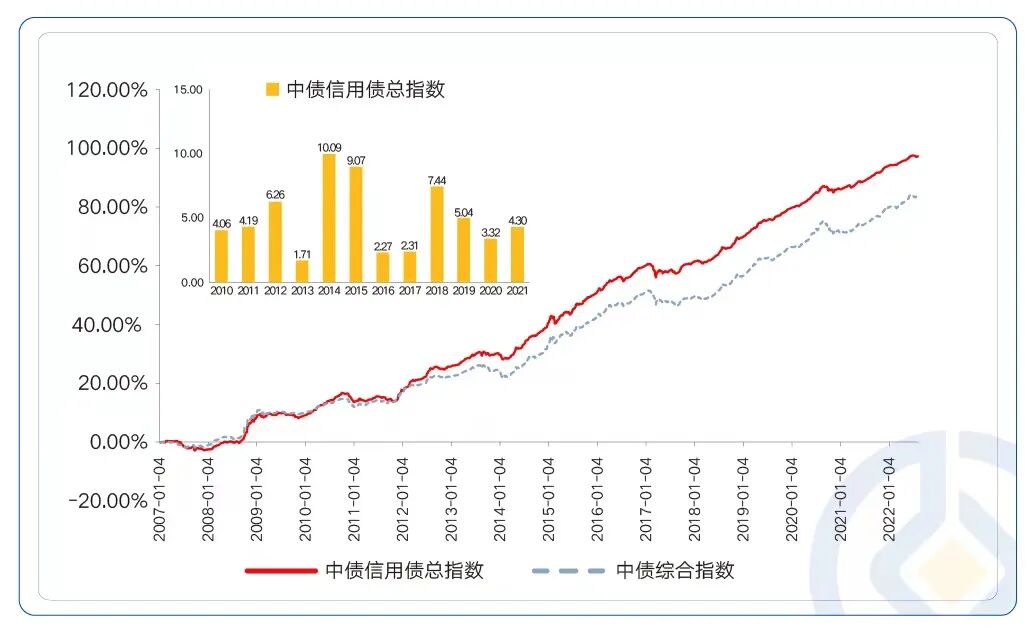 信用债打底:wind数据显示,相比整体债市,信用债具有超额回报;且2010年以来,信用债指数每年益均为正。